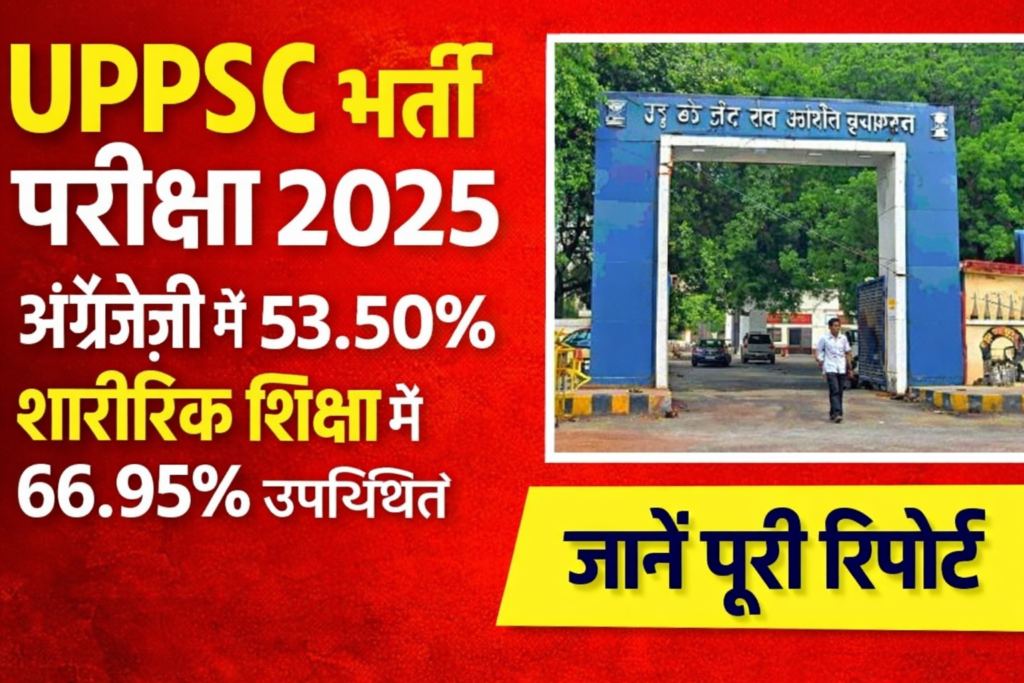 उत्तर प्रदेश लोक सेवा आयोग (UPPSC) द्वारा आयोजित एलटी ग्रेड सहायक अध्यापक भर्ती परीक्षा 2025 रविवार को दो पालियों में शांतिपूर्ण ढंग से संपन्न हुई। परीक्षा में अभ्यर्थियों की उपस्थिति प्रतिशत अलग-अलग विषयों में भिन्न रही।