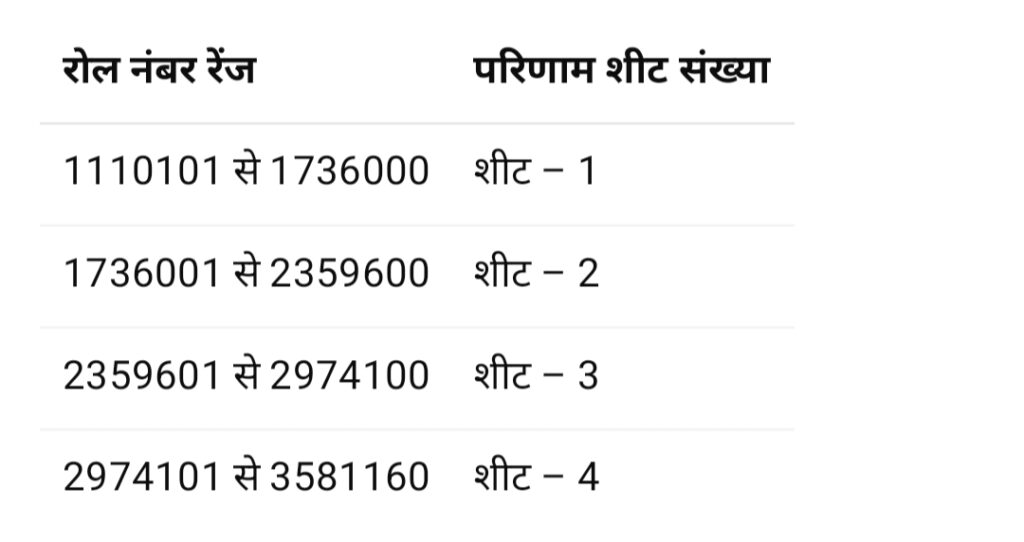 👉 अभ्यर्थी अपने रोल नंबर के अनुसार संबंधित परिणाम शीट में अपना मेरिट क्रम (Merit Rank) देख सकते हैं।
