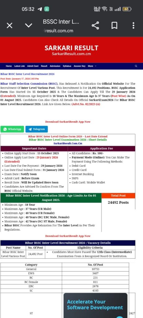 рдЕрдЧрд░ рдЖрдк рдмрд┐рд╣рд╛рд░ рдореЗрдВ рд╕рд░рдХрд╛рд░реА рдиреМрдХрд░реА рдХреА рддреИрдпрд╛рд░реА рдХрд░ рд░рд╣реЗ рд╣реИрдВ рдФрд░ 12рд╡реАрдВ рдкрд╛рд╕ рд╣реИрдВ, рддреЛ BSSC Inter Level Recruitment 2026 рдЖрдкрдХреЗ рд▓рд┐рдП рдмреЗрд╣рддрд░реАрди рдореМрдХрд╛ рд╣реИред рдЖрд╡реЗрджрди рдХреА рдЕрдВрддрд┐рдо рддрд┐рдерд┐ рд╕реЗ рдкрд╣рд▓реЗ рдлреЙрд░реНрдо рдЬрд░реВрд░ рднрд░реЗрдВ рдФрд░ рдкрд░реАрдХреНрд╖рд╛ рдХреА рддреИрдпрд╛рд░реА рд╢реБрд░реВ рдХрд░реЗрдВред