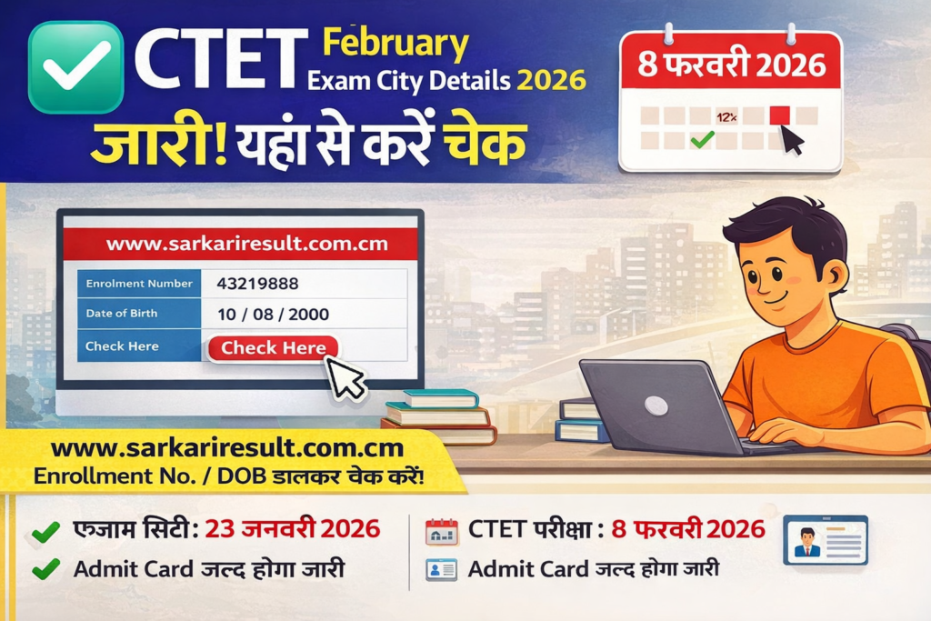 CTET February 2026 рдореЗрдВ рд╢рд╛рдорд┐рд▓ рд╣реЛрдиреЗ рд╡рд╛рд▓реЗ рдЙрдореНрдореАрджрд╡рд╛рд░реЛрдВ рдХреЗ рд▓рд┐рдП Exam City Details рдЬрд╛рд░реА рд╣реЛрдирд╛ рдПрдХ рдорд╣рддреНрд╡рдкреВрд░реНрдг рдЕрдкрдбреЗрдЯ рд╣реИред рдЕрдм рдЙрдореНрдореАрджрд╡рд╛рд░ рдЕрдкрдиреА рдпрд╛рддреНрд░рд╛ рдХреА рдпреЛрдЬрдирд╛ рдкрд╣рд▓реЗ рд╕реЗ рдмрдирд╛ рд╕рдХрддреЗ рд╣реИрдВред рдЕрдЧрд▓рд╛ рдмрдбрд╝рд╛ рдЕрдкрдбреЗрдЯ CTET Admit Card 2026 рд╣реЛрдЧрд╛ред