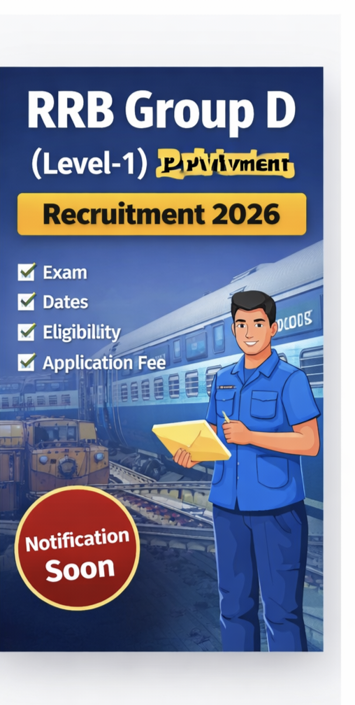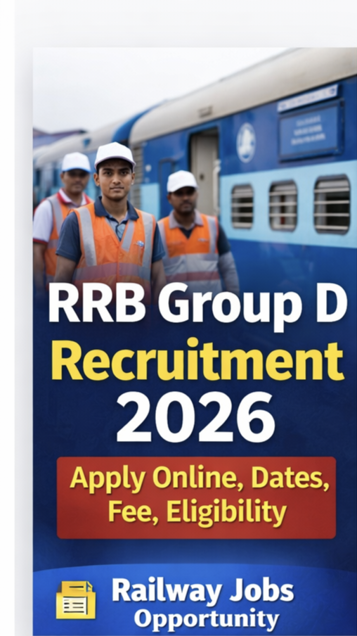 рдЕрдЧрд░ рдЖрдк рд░реЗрд▓рд╡реЗ рдореЗрдВ рдиреМрдХрд░реА рдХрд╛ рд╕рдкрдирд╛ рджреЗрдЦ рд░рд╣реЗ рд╣реИрдВ рддреЛ RRB Group D Recruitment 2026 рдЖрдкрдХреЗ рд▓рд┐рдП рд╢рд╛рдирджрд╛рд░ рдЕрд╡рд╕рд░ рд╣реИред рд╕рдордп рдкрд░ рдЖрд╡реЗрджрди рдХрд░реЗрдВ рдФрд░ рдкрд░реАрдХреНрд╖рд╛ рдХреА рддреИрдпрд╛рд░реА рдЕрднреА рд╕реЗ рд╢реБрд░реВ рдХрд░реЗрдВред