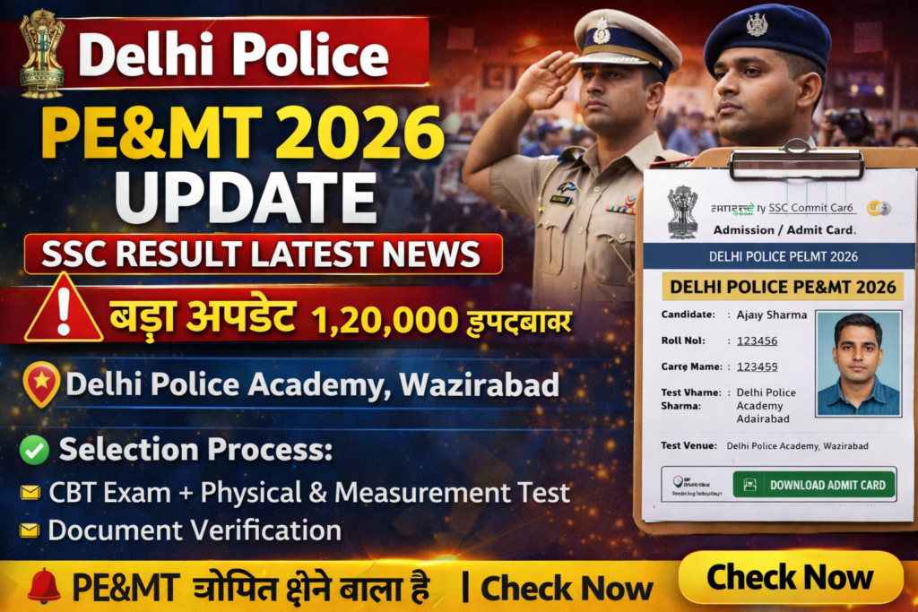 Delhi Police भर्ती 2026 के लिए PE&MT का यह अपडेट उम्मीदवारों के लिए बहुत महत्वपूर्ण है।