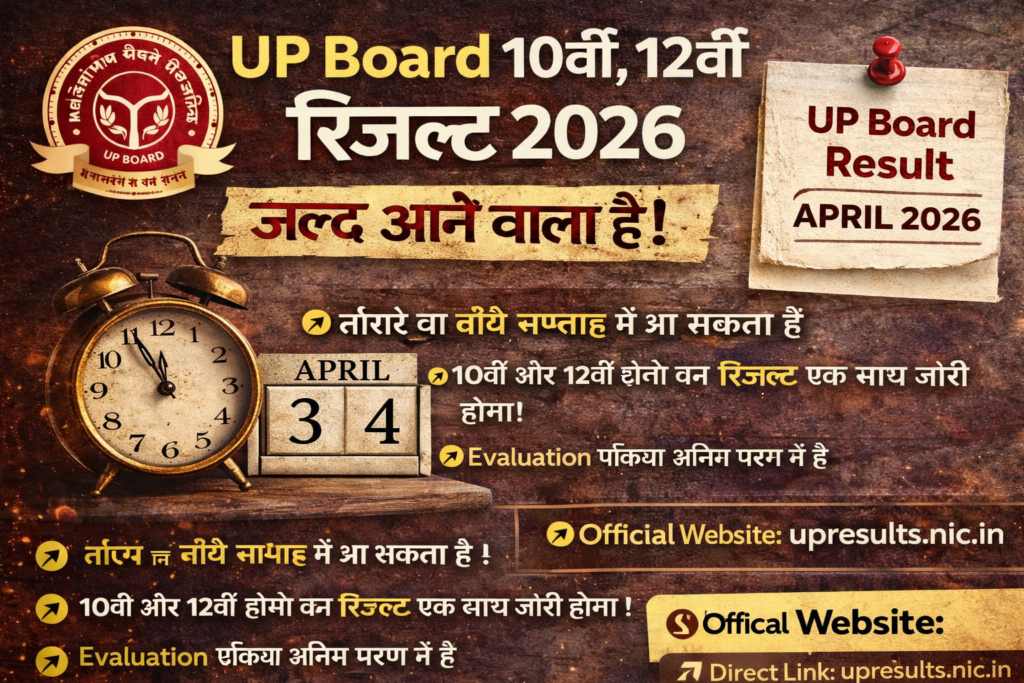 रिपोर्ट्स के अनुसार, UP Board Class 10 और Class 12 Result 2026 को April 2026 के तीसरे या चौथे सप्ताह में जारी किया जा सकता है।