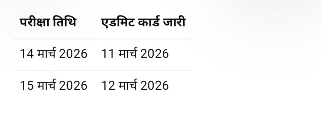एडमिट कार्ड 11 मार्च और 12 मार्च 2026 को जारी किए जाएंगे।